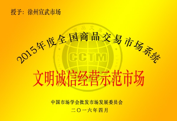 日前,第十七屆中國商品交易市場發(fā)展論壇在北京舉行。會上,公司被中國市場學會批發(fā)市場發(fā)展委員會授予2015年度全國商品交易市場系統(tǒng)“文明誠信經(jīng)營示范市場”稱號。公司黨委書記、董事長、總經(jīng)理李旭昇獲全國商品交易市場發(fā)展功勛人物稱號。
